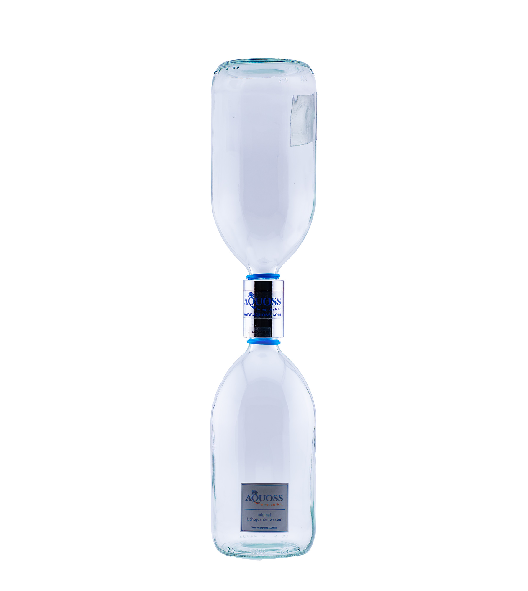 Das AQUOSS Vital-mobil Chrom Basic Set enthält das verchromte Verwirbler-Modul sowie zwei hochwertige Klarglas-Flaschen — sofort einsatzbereit.