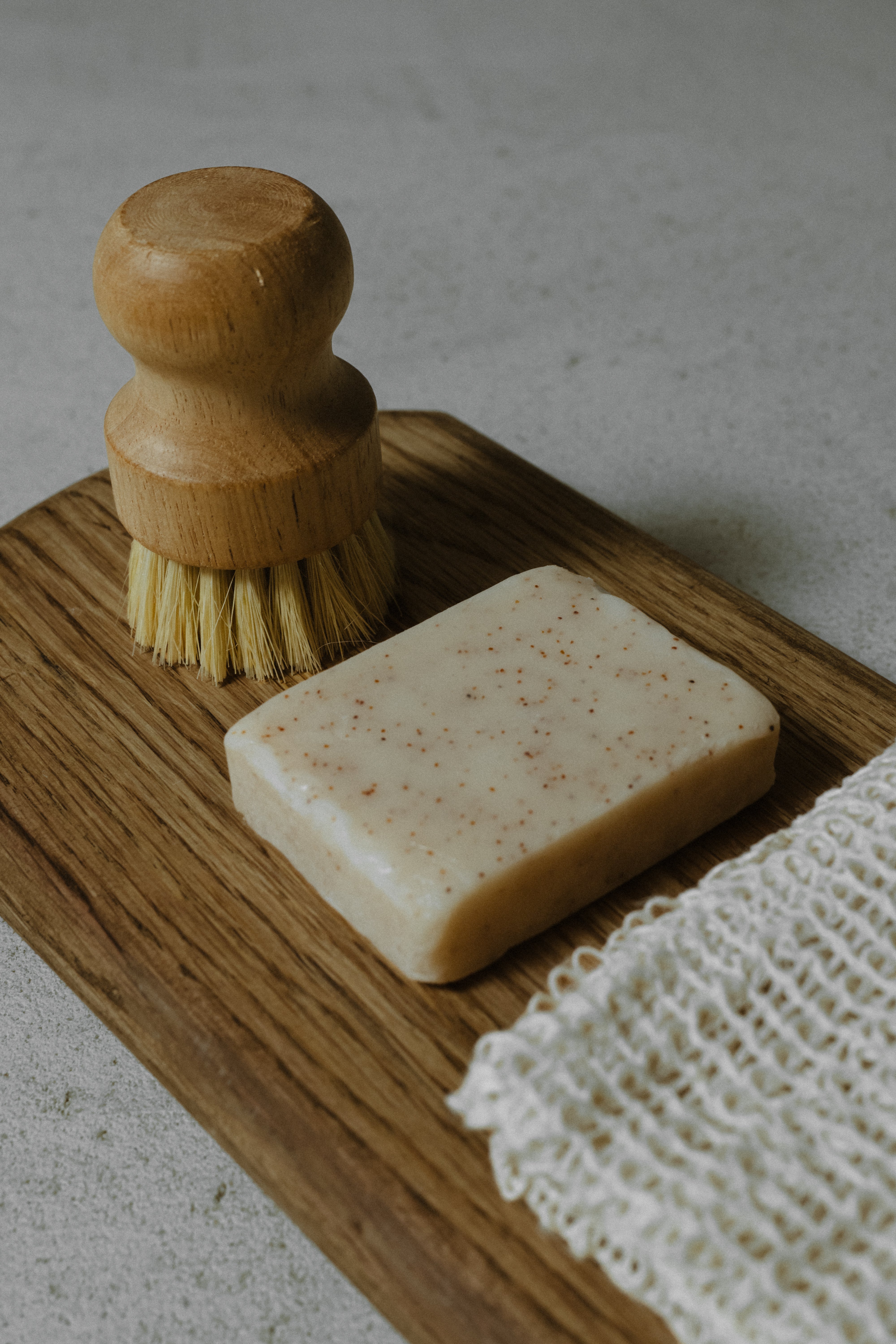 - Kokos-Peeling-Seife – Handgefertigt aus pflanzlichen Zutaten, für die Reinigung des Behälters