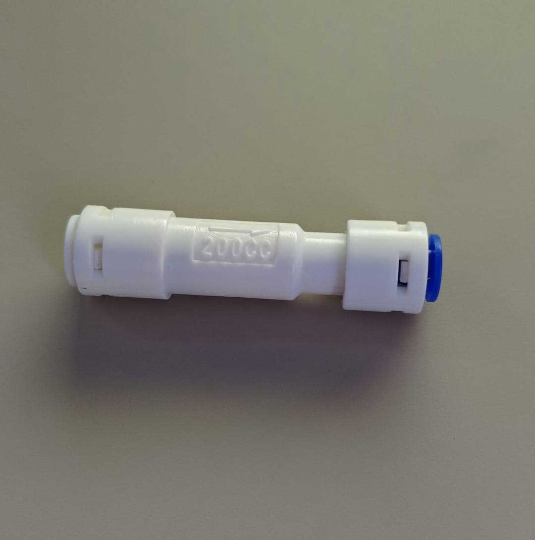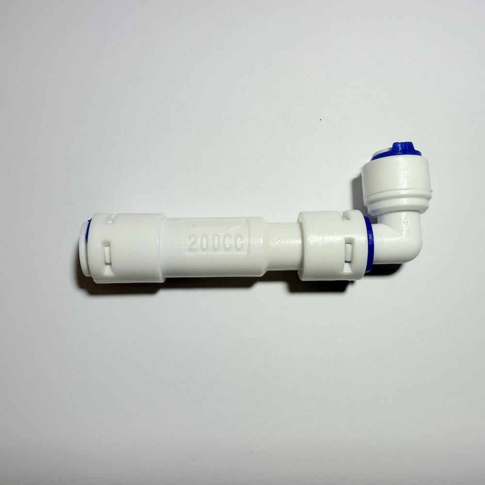 Der Flow Durchflussbegrenzer, oft als kleines Winkelstück verbaut, reguliert die Menge an Abwasser, das beim Betrieb einer Umkehrosmoseanlage durch die Leitung fließt. In Gegenden mit hartem Wasser ist das besonders wichtig, weil sich Kalk und andere Mineralien schnell ablagern und die Durchflussmenge – und somit die Spülwirkung – verringern.