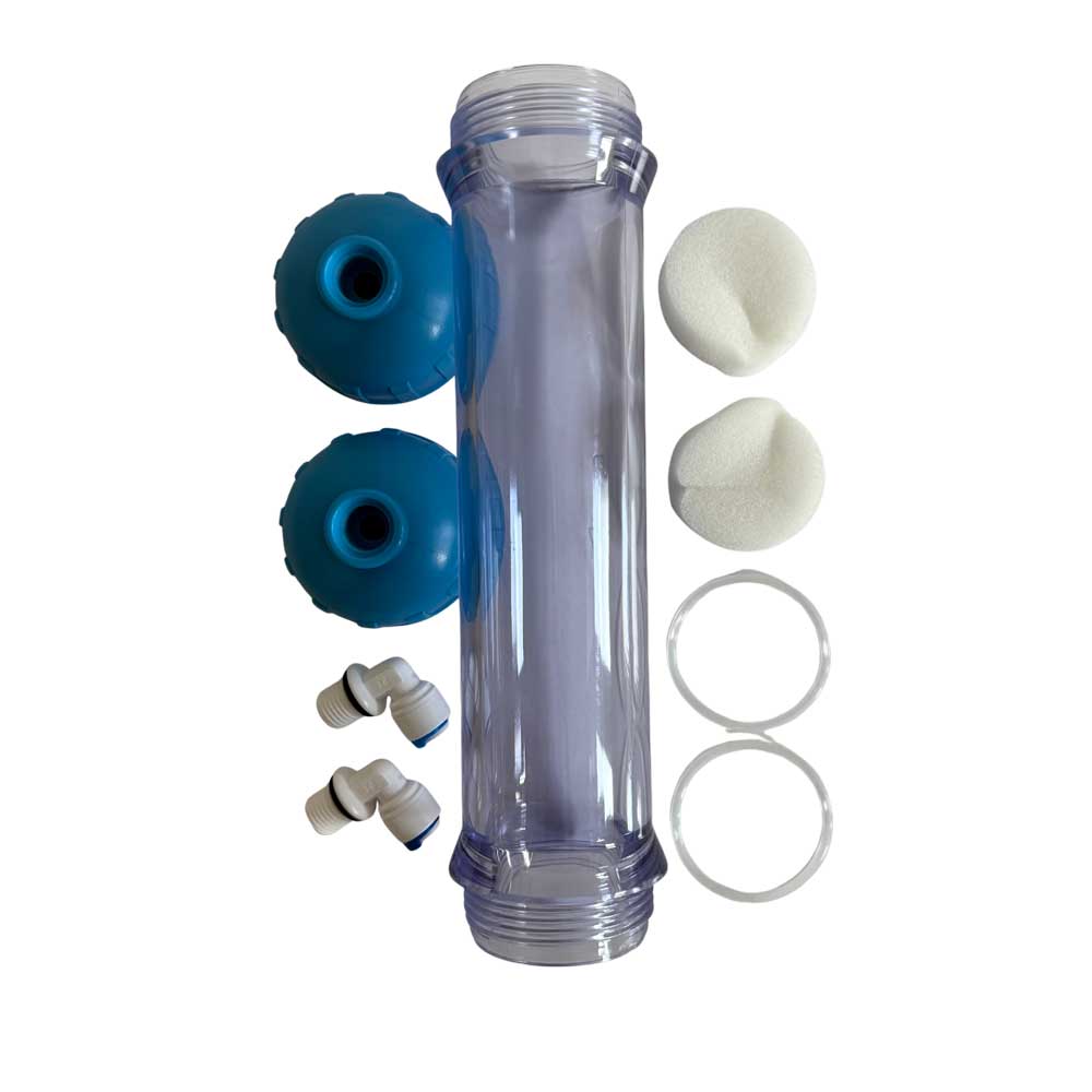 In diese Leerkartusche mit Siebeinsätzen können Sie beliebige Medien einfüllen. Wir empfehlen Ihnen das Okinava Sangokorallengranulat zur Re-Mineralisierung & phWertkorrektur Ihres Osmosewassers zu verwenden. Wir hatten früher eine transparente Version. Aufgrund der Verkeimungsgefahr, die bei lichtdurchlässigen & transparenten Kartuschen steigt, bieten wir aktuell diese weiße Version an.