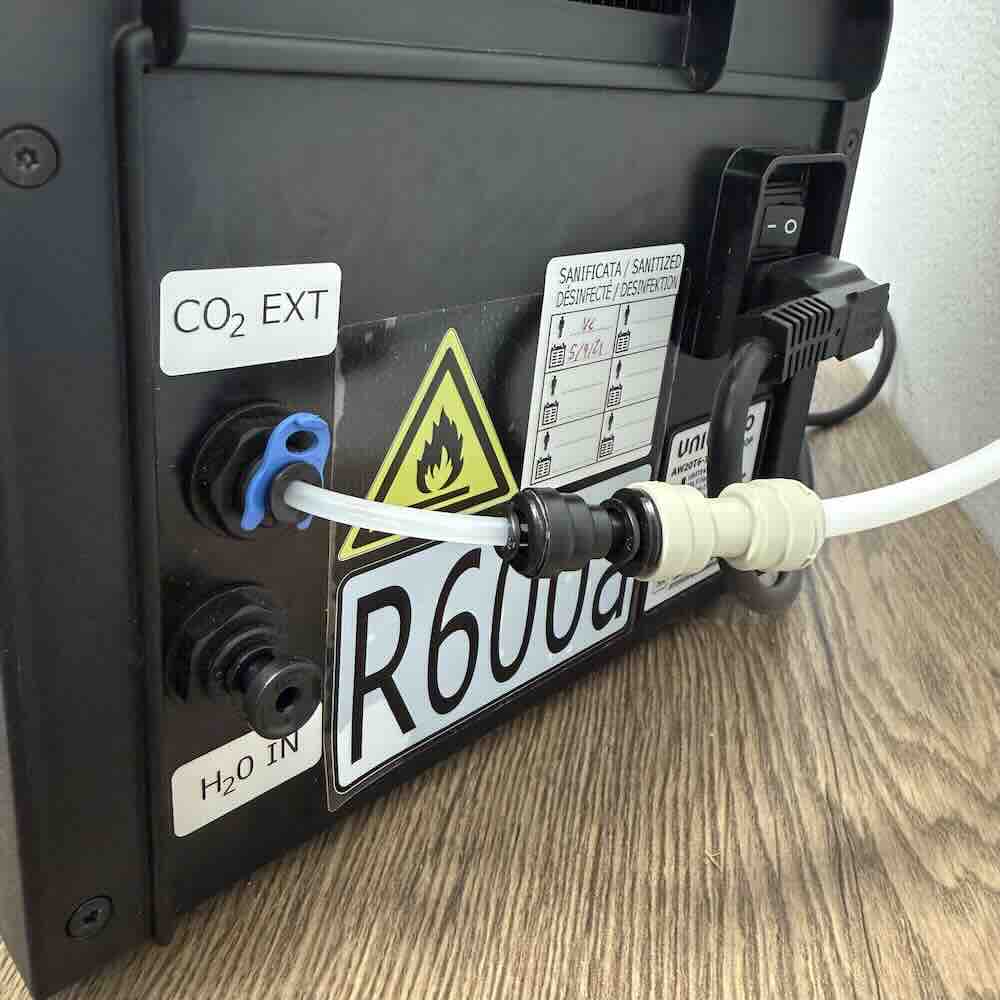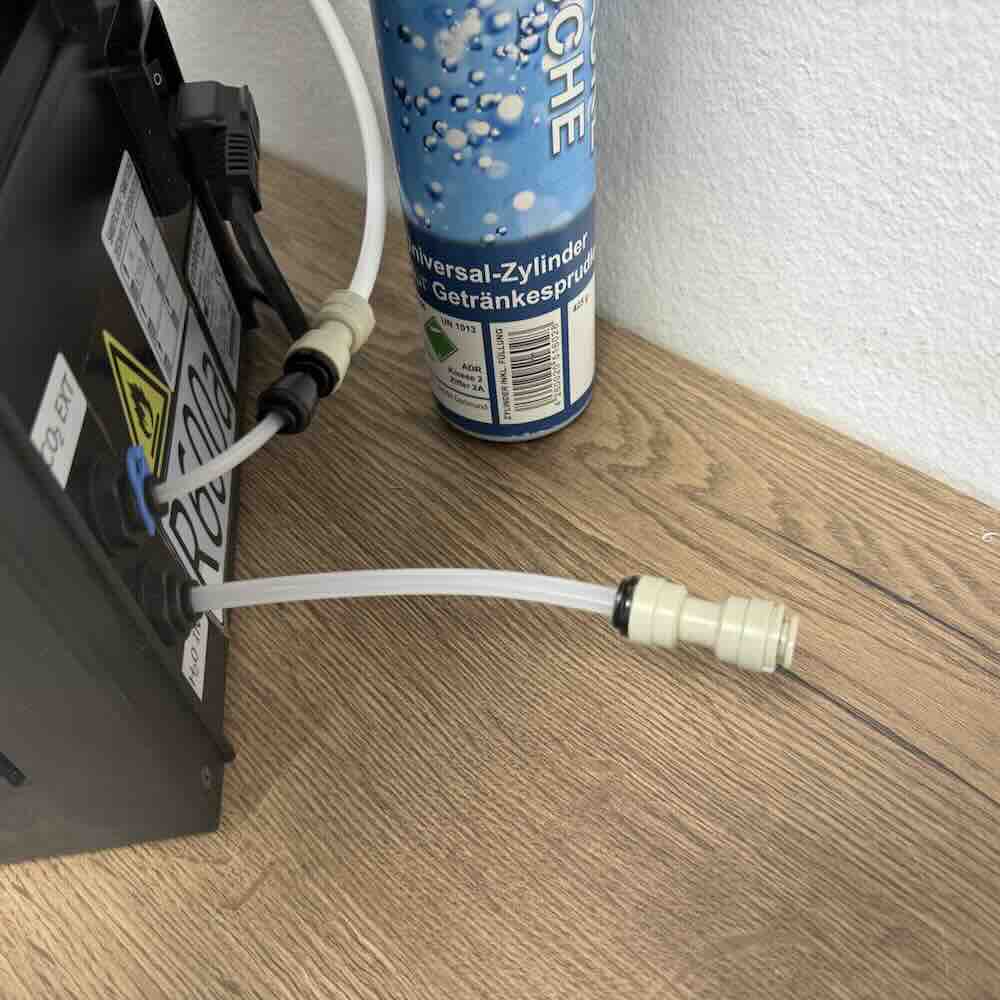 | Lieferumfang: | Grundgerät mit externem Wassertank, Tropfschale, CO2 Schlauchsystem umgebaut für externen Anschluss von verschiedenen Druckreglern, Festwasseranschluss adaptiert auf regulären 1/4 Zoll Schlauch, Originaler Filterkopf mit Adaptern & Kupplung überbrückt, 3m Schlauch 1/4 Zoll für CO2 Anschluss und Festwasseranschluss, Bedinungsanleitung (inkl. Original Druckventil, Original CO2 Flasche und Filter für eventuellen Rückbau) plus Ihre gewählten Zusatzkomponenten |