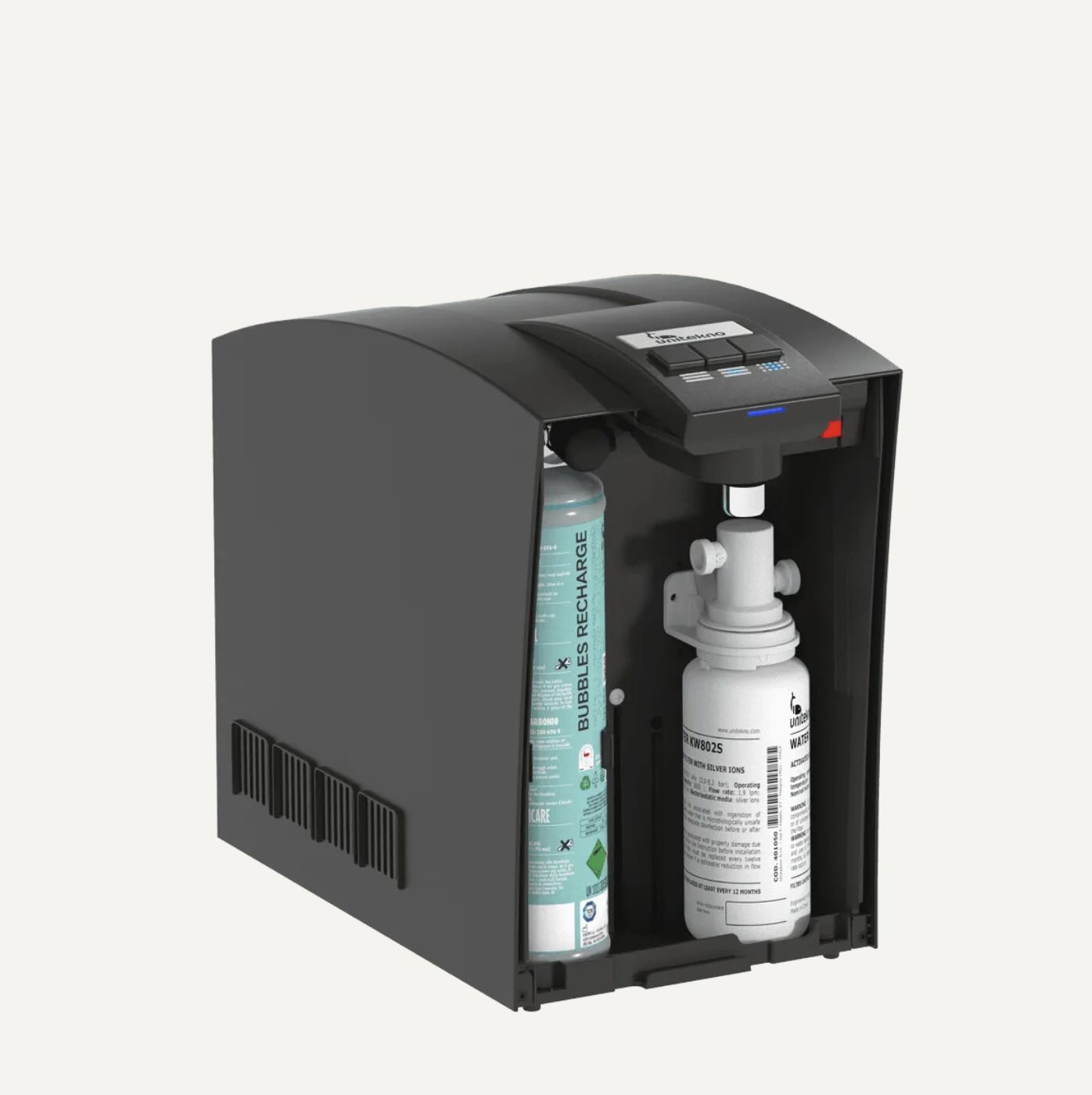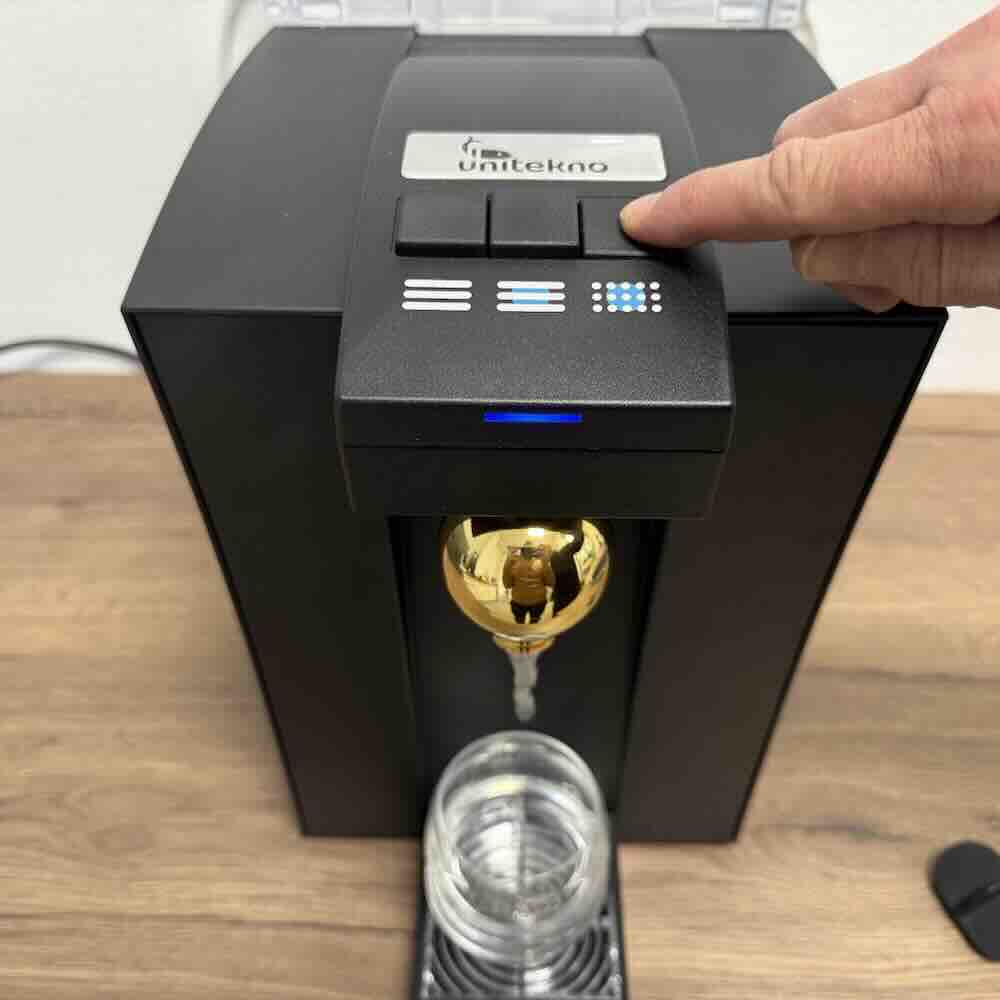 - Karbonisierung: Stufenlos einstellbar – von leicht spritzig bis stark sprudelnd