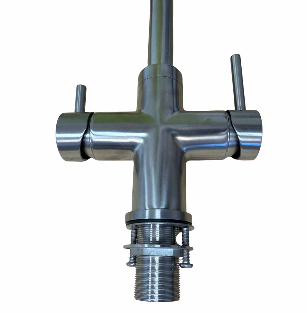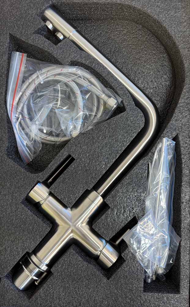 Der Neo 5-Wege-Wasserhahn vereint höchste hygienische Ansprüche mit innovativer Technik und zeitlosem Design. Vollständig aus massivem Edelstahl gefertigt, bietet diese Premium-Küchenarmatur die ideale Lösung für moderne Küchen mit Osmoseanlagen, Aktivkohlefiltern oder Kombi-Kühl- und Sprudelwassergeräten.